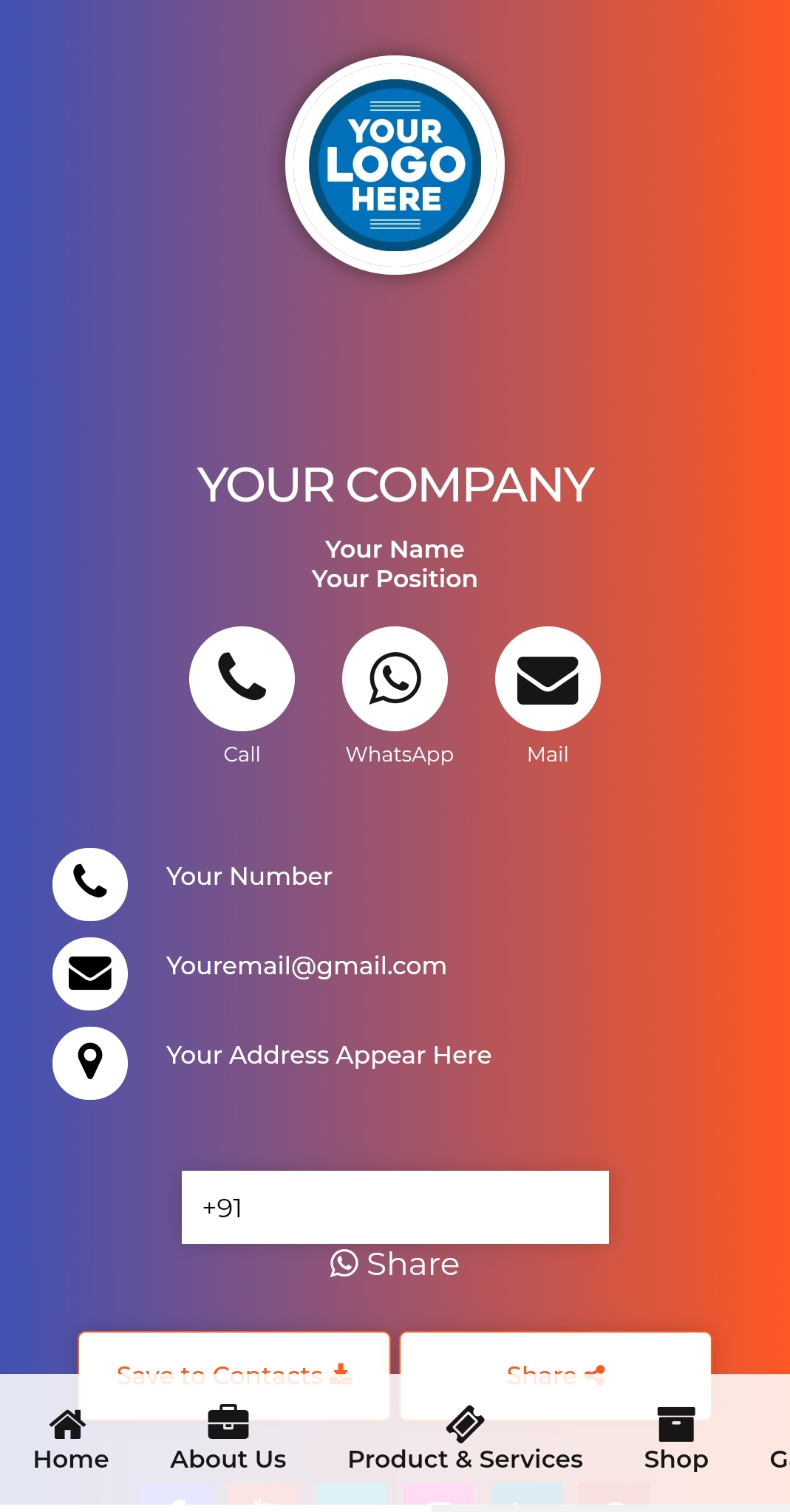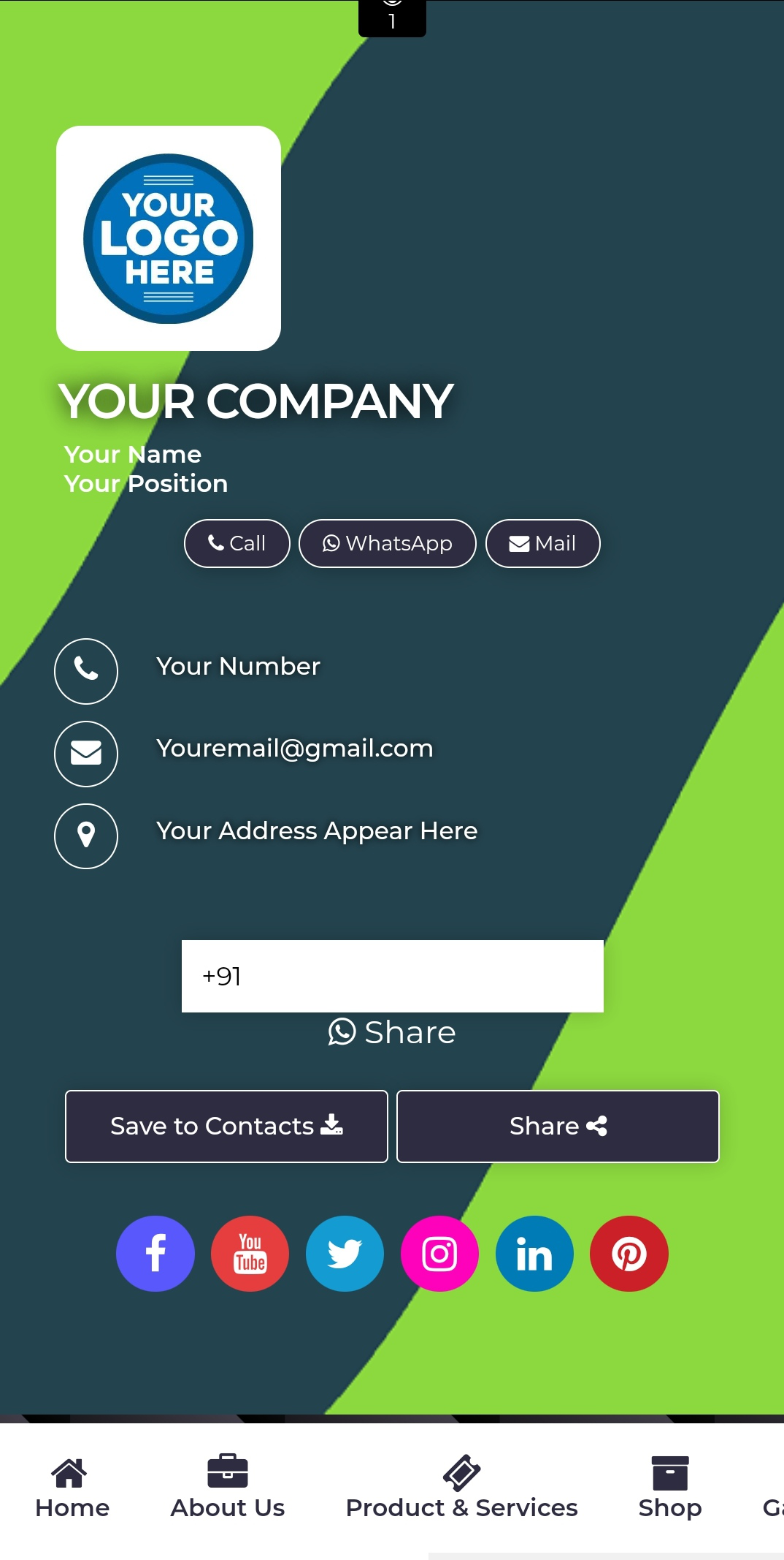Design your digital visiting card in 2 minutes - it's easy, elegant and free. This Online Vcard is always in your pocket, never tears and never runs out. Your Digital Visiting Card can be easily updated with our user-friendly dashboard, so you won't need to re-print a business card again.